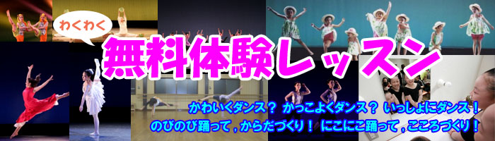 ダンスは、生涯の財産となる健康な身体と、豊かな心を養う力があります。 まずは、無料体験レッスンから。 |